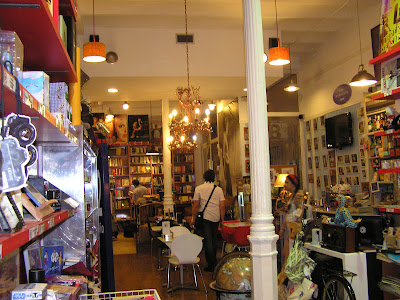 El interior invita a leer, a sentarte en uno de esos silloncitos, a comprar un libro, a regalar una cajita de te y un libro a un amigo, a trastear entre los libros usados.