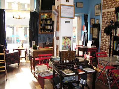 Paseo cerca de la plaza de Opera.Me gusta esta calle porque de Opera me lleva a otra calle que me encanta, la calle Santiago, llena de barcitos y tiendas curiosas.Subiendo la calle a la derecha está este local que no podéis dejar pasar¡¡¡¡Es una librería preciosa, los colores y la presentación de los libros invitan a leer, a relajarse… -