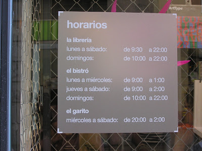 De lunes a domingode 11 a 15 y de 17 a 22:30Si…me encantan las tiendas de libros.Libros y café, dos de mis grandes pasiones y en este lugar…”me” encuentro.Sí, a veces hay que parar y encontrarse. Leer, escribir, pensar…Todo un lujoEl espacio es maravilloso. Simplemente te apetece estar allí, con sus columnas blancas, su luz, sus estanterías repletas de buenos libros,Excelentes ideas para regalar, ediciones especiales, libros infantiles preciosos…Te puedes tomar un vino, un cafecito, un brownie rico y…relajarte… y leer o escribir ¡un placer secreto¡A veces tengo mi pequeño ordenador y con el wifi escribo...o paso el tiempo…sin más.Otras voy cargada con mis cuadernos (esos de Palma Papel, de los que os hablé) y escribo.Los chicos que lo llevan son un encanto, siempre están por el local.Un lugar que “calma el alma”.No os lo perdáis¡¡¡¡¡¡
