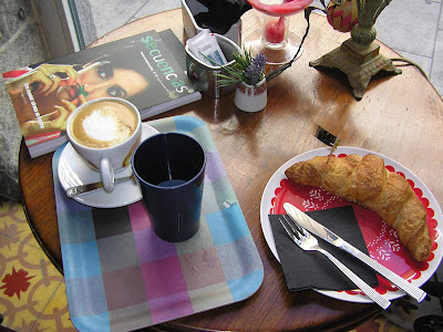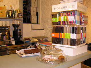 Merendé en el otro café, El Gatopardo. Un café librería, al fondo de la tienda….en la mesita de la