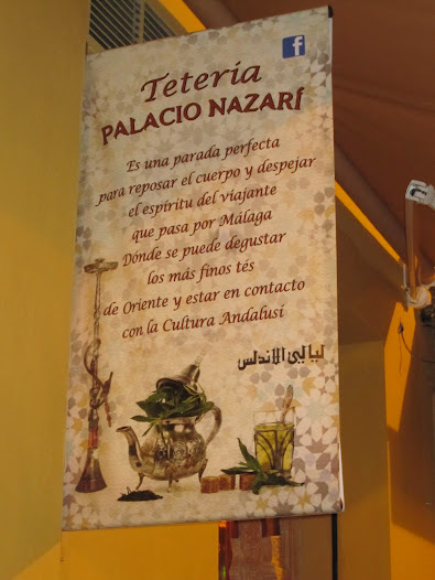 -         Un te en las teterías cercanas al Museo Picaso. En la Calle Echegaray casi frente al Teatro del mismo nombre está el Palacio Nazarí, con lámparas increíbles, una entrada con arena del desierto y tesoros y….un te marroquí y paquistaní…..que te hace viajar a lugares lejanos….