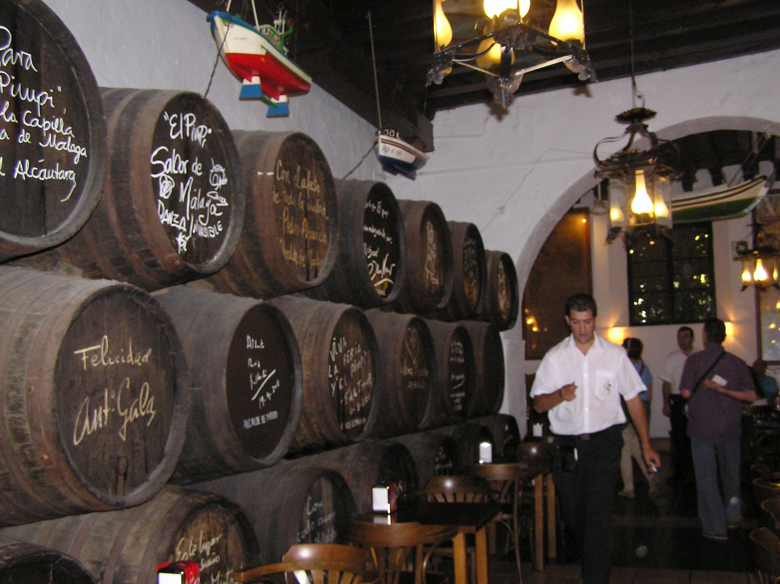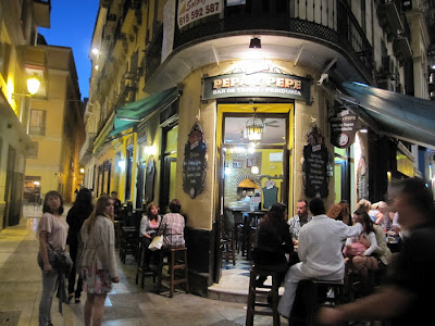 -         El Pimpi: una taberna de las de toda la vida, con sus barriles, sus geranios, las cruces de mayo decorando y una terraza con vistas a la Alcazaba  y el Teatro Romano.