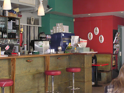 Bar Café N. 9 (en ese mismo número). Mucho ambiente. Un local muy setentero, con butacas rojas.